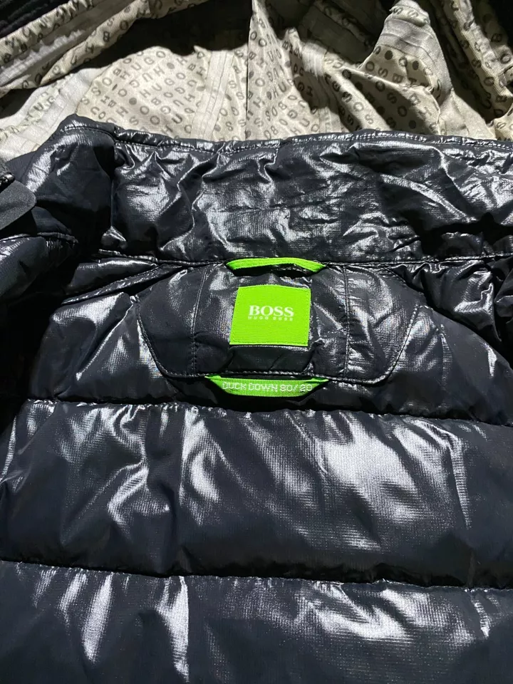 Hugo Boss Mens Bomber Down XL Jacket Navy Blue Padded Yellow Water Resistant