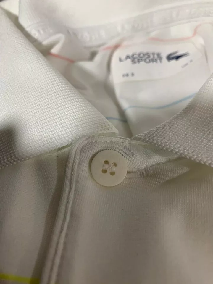 Lacoste Mens Polo Shirt S White Striped Technical Jersey Sport Golf DH3443