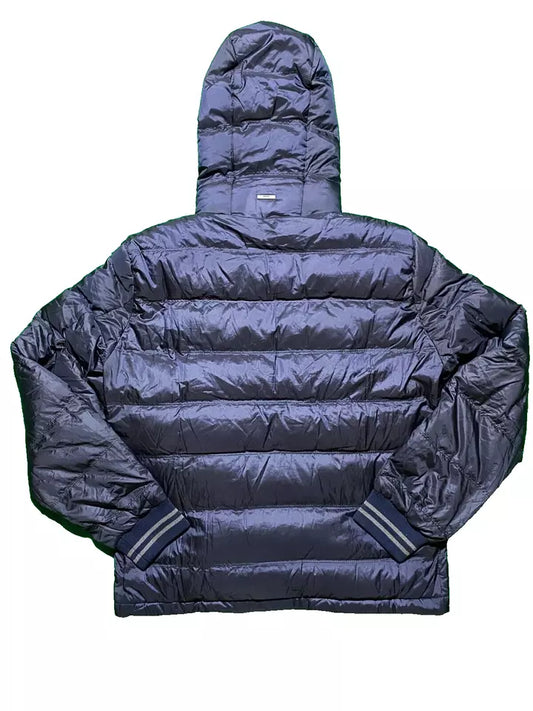 Hugo Boss Mens Bomber Down Jacket Small Blue Zip Pockets Hooded Padded 46